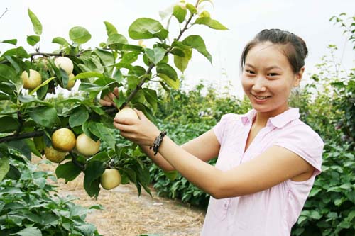 以前,一些梨农认为果子挂得越多越好,每棵梨树都密密麻麻地结满了梨子,可由于光照度不够、肥料吸收不均匀,次果比率较大,整体收入并不高,还影响着梨树的生长。近几年来,农场大力推广剪枝、疏花、疏果等技术,对1000多亩梨树实行“计划生育”,确定挂果数量和位置,数量虽然减少了,但优质果率却达到了90%以上,收益却明显提高。与蜜梨一样,今年农场种植的西瓜也采取了“节育”措施,限制每株结瓜数量,使西瓜的品质大幅度提高,价格直涨不降,目前批发价格由起初的每斤0.8元上涨到1.2元。