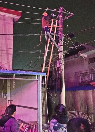 东辛“电雷锋”们在寒夜接到故障消息后,第一时间赶赴现场,他们克服道路冰冻行走困难、电杆覆冰攀爬湿滑等不利因素,顶着刺骨的寒风,咬紧牙关一步一个脚印,仔细进行设备检查和维修,在杆上艰难地完成每一个动作,一刻也没有停歇,以最快速度抢修受损线路恢复居民用电。