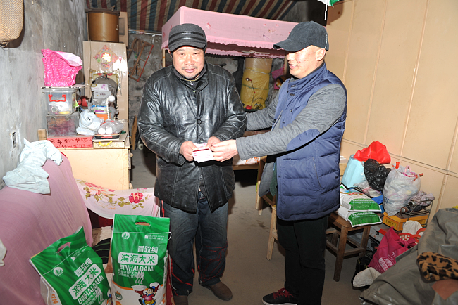 原来,陆同林是农场转岗职工,通过自谋职业,从事个体经营业务。有着浓厚军垦情结的他,在两天前特地找到臧成龙,想通过他了解,并在年前资助两户贫困户的想法。