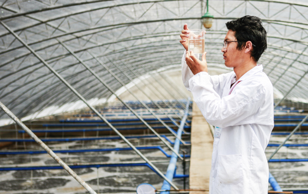 在水产公司水产科技园的鱼塘边,每天都奔忙着一位年轻帅气的小伙子,他时常一手提着测水仪,一手提着显微镜,在鱼塘边研究探索养殖技术,时常带着渔网巡查鱼虾生长情况,时常推饲料扛饲料参与鱼虾喂养……他就是东辛农场优秀共产党员成永洲。
