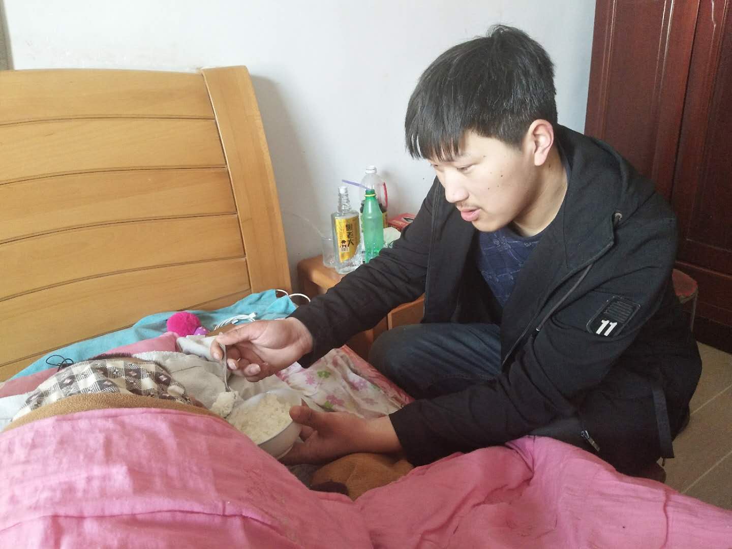 徐士尧是东辛农场西洋社区居委会居民,他自幼聪明伶俐、勤奋好学、成绩优秀,和许多同龄的孩子一样,他原本有个幸福的家庭,谁知命运多舛,在他上小学五年级的时候母亲因意外事故去逝,2015年在他16岁读高一的时候,厄运再次降临,父亲又因车祸导致高位截瘫,卧床不起,生活不能自理,家里还有年迈多病80多岁的爷爷和奶奶,妹妹又正在读小学,从此家里失去了顶梁柱,失去了经济来源,又增添了一位需要照顾的常年卧床病人,这样小小的年纪,徐士尧过早尝到了生活的艰辛,面对家庭的不幸,生活的挫折,他没有退缩,只有坚韧,毅然决然地用稚嫩肩膀挑起了家庭生活的重担,含泪放弃了自己的未竟学业,放弃了自己的大学梦想,放弃了自己的锦秀前程,回到家中悉心照顾瘫痪的父亲,端屎端尿、喂饭喂药、翻身擦背……徐士尧无微不至地照顾着父亲,每天从早到晚不厌其烦,不怕脏不怕累,同时在网上开店创业补贴家用,重新点燃了这个不幸家庭生活的希望。