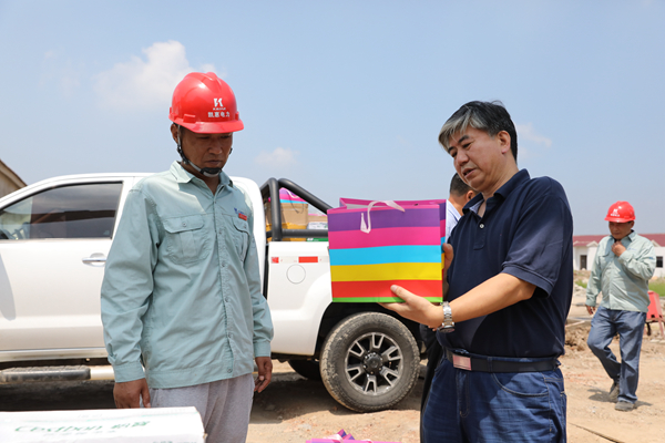 8月8日上午,烈日当头,酷暑难耐,在东辛农场有限公司银羽住宅新区供电线路铺设现场,集团公司工会主席佟晓廷一行在东辛党委书记韩中书、纪委书记王绪国、工会主席刘春利等领导陪同下,亲切慰问了在高温环境下仍然坚守在安装一线的供电中心员工们,为三伏天工作在一线的劳动者送上了防暑降温用品。