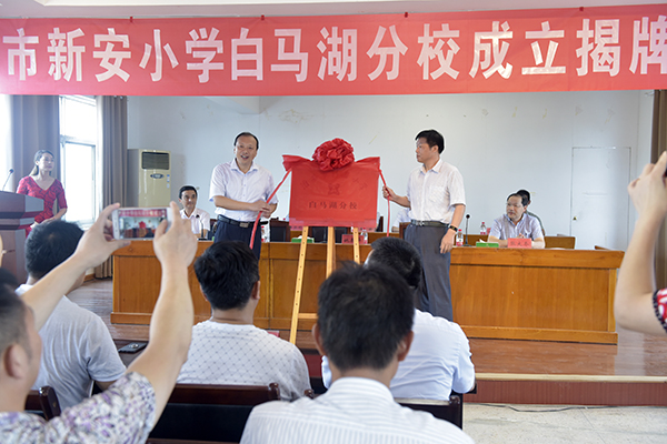 为更好地贯彻落实《省政府关于统筹推进城乡义务教育一体化促进优质均衡发展的若干意见》,积极放大利用优质教育资源,探索城乡互动实现均衡发展的新途径,8月18日,淮安市新安小学白马湖分校举行成立揭牌仪式,以创新的理念、模式、思路、举措,通过校际联合、校企配合,实现同心促教育发展、携手筑城乡均衡,揭开新时代融合发展、教育惠民的新篇章。