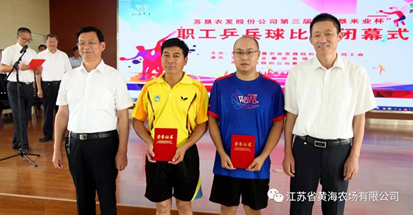 日前,苏垦农发股份公司第三届“苏垦米业杯”乒乓球比赛圆满落幕。新洋分公司副总经理仰海洲出席颁奖仪式。