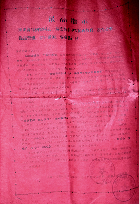 革命的家长同志们!过去,你们曾是知识青年上山下乡的促进派。今后,相信你们一定会更好地用毛泽东思想教育子女,鼓励他们扎根兵团干一辈子革命。让我们更紧密地团结在以毛主席为首、林副主席为副的党中央周围,沿着毛主席指引的继续革命的航道,奋勇前进。