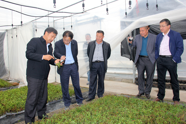 来宾们先后参观了玻璃温室和连栋大棚内容器扦插的中山杉苗,扦插品种及中山杉苗移栽林带,对中山杉容器扦插育苗技术及适种性、市场行情作了深入的了解和交流。王世伯向来宾们介绍了�港农场林业生产特点:公司利用防风林带及田边隙地发展林业生产,主要有三种模式:容器育苗、嫁接苗、林下中药材种苗。利用玻璃温室进行容器育苗的主打产品——中山杉苗,由于实现了温度、湿度、光照的精确控制,成活率远超周边苗木基地,市场行情较好,今年扦插了160万株中山杉苗,目前插穗长势良好,生根率高,出圃商品率可望超过去年水平。按照江苏林业生产提出的“彩色化、珍贵化、效益化”的要求,林业中心精心打造了“嫁接苗木基地”,生产的黄金槐、金森女贞、红榉、丁香彩色树种苗木增值达10倍以上。公司与南京中医药大学积极合作,去年底,首批药材种苗在梁垛河大圩上试种成功,预期每亩效益可达万元以上。