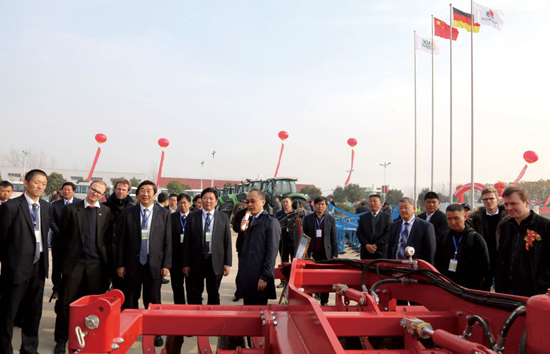 演出结束后,与会领导和嘉宾共同观摩了中德示范园先进农机具展示和田间作物。