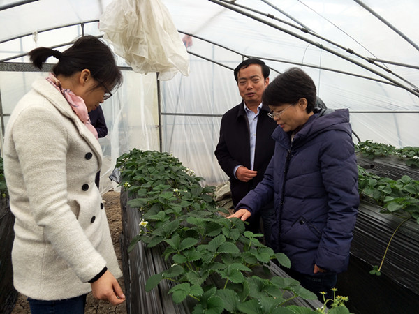 12月4日,江苏省草莓协会会长、省农科院园艺所研究员赵密珍老师,在盱眙县副县长王西成的陪同下,一行五人来三河科技园区调研指导工作,三河分公司总经理赵广福、副总农艺师贾后如陪同接待。