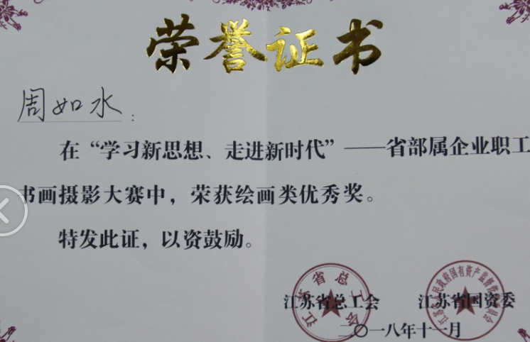 据悉,举办本次职工书画摄影大赛,旨在全面贯彻落实习近平新时代中国特色社会主义思想和党的十九大精神,纪念改革开放40周年,进一步激发广大职工爱党爱国、爱岗敬业的热情,增强国有企业凝聚力。集团公司工会积极组织垦区职工选送作品参赛,共选送书法绘画摄影三类作品18幅,其中江苏省农垦集团有限公司荣获优秀组织奖;黄海职工汪志豪荣获绘画类一等奖;黄海职工王蕴知荣获书法类二等奖;东辛职工周如水荣获绘画类优秀奖。