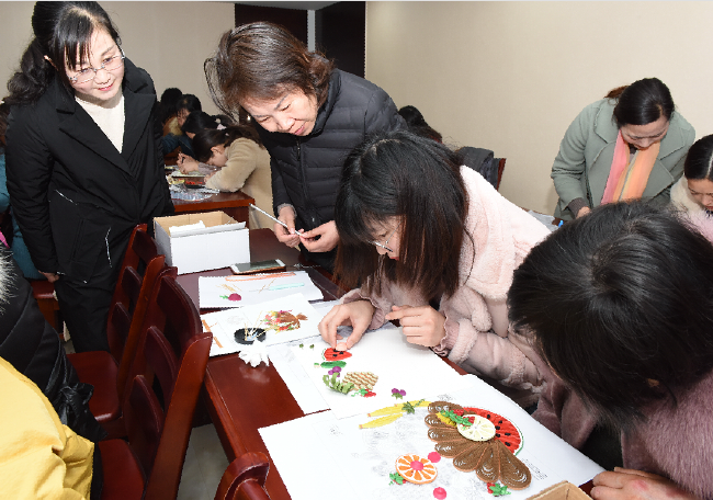阳春三月春风暖,花红柳绿袭人间。为纪念第109个“三八”国际劳动妇女节,展示淮海女职工新时代的精神风貌,进一步激发起巾帼半边天的建功热情,发挥女职工爱岗敬业、团结协作、开拓创新精神,3月8日上午,一场生动有趣的“庆三八”巧手衍纸画竞赛活动在农场社区二楼会议室举办,来自农场社区16个基层单位的48名选手参加了“庆三八”巧手衍纸画竞赛活动。经过半天时间妇女们的精心创作和裁判们的评定,来自淮海医院代表队的选手黄海英、黄丹、顾涵组合以一幅《娴静》获得一等奖;来自供应贸易部代表队的辛道红、孟玲娟、夏红云以一幅《忘忧》获得了二等奖;七分场社区代表队的徐红娟、陈爱民、陈武英以作品《欣欣向荣》获得了三等奖。丰富多彩的巧手衍纸画竞赛活动,让妇女们在繁忙工作之余,度过一个健康快乐、温馨和谐、难忘而有意义的节日。