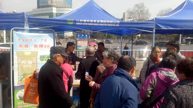 3月17日14时,为期三天的“江苏农垦第二届镇江农副产品展销会”在金桥贸易公司胜利闭幕。本次展销会以下放江苏兵团知青50周年庆典为契机,以“3·15消费者权益保障日”为提高消费者满意度为宗旨,汇集金太阳粮油、黄海农场、江心沙农场、海天集团、工商银行、淮盐等众多厂商和品牌举办的农副产品展销会。