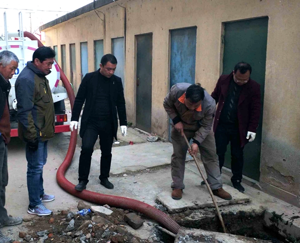 邱金龙连忙上门查看后了解到5村35幢商品房从90年代建成至今,化粪池从来都没清理过,从而造成了管道堵塞。于是,邱金龙赶紧联系环卫所出动抽粪车速来。环卫所相关负责人赵丙华、陈荣赶来现场后,迅速打开下水道盖板便开始操作。经过近2小时的努力才终于清理完毕。而此时的邱金龙、赵丙华、陈荣也才擦了擦头上的汗水、舒缓了一口气,周围的居民看见了纷纷倒水递毛巾,沈师傅更是激动地拉着邱金龙他们的手连声道谢!