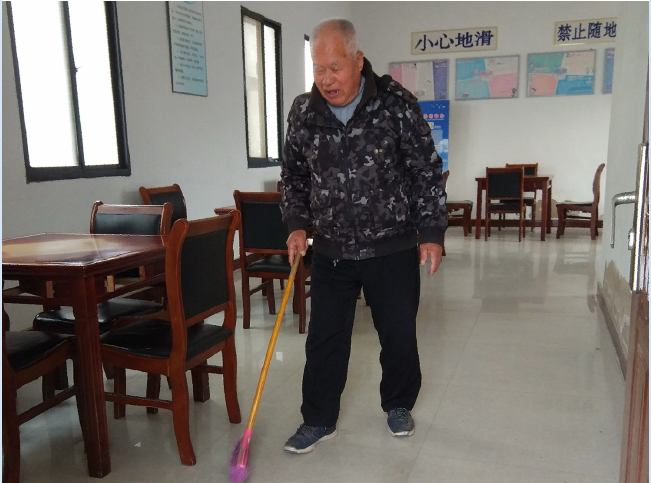 笔者在活动室内看到,五六张桌椅摆放得整整齐齐,地下也很是光洁,看得出老人不但工作担待有爱心,做事更是细心。
