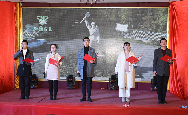 把理想誓言背在肩上,拼搏奋进充满力量;把汗水艰辛装进行囊,豪情万丈奔向前方。一曲催人奋进的华美乐章已奏响,一轮喷薄的太阳,又冉冉升起在东方。长风鼓起远航的航船,决策者已吹响出征的号角,让我们精心耕耘在这片土壤,淮海人气宇轩昂。我们奉献,无怨无悔;我们自豪,歌声嘹亮;我们骄傲,我们是淮海人,让我们共同努力,共筑淮海明天的辉煌。图为诗朗诵现场。