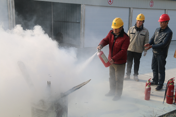 演练开始前,水电中心主任郭小平就灭火器的种类、适用场景、如何使用及注意事项进行了详细说明,并作示范操作。讲解结束后,消防安全应急演练开始。在中心领导的带领下,参加人员拿起灭火器材,来到“火场”,面对“火情”,拔开保险栓,对准火势喷出灭火干粉,大火瞬间熄灭。