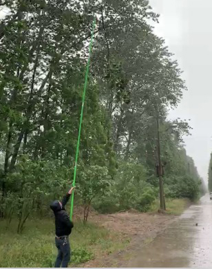 “高一点,再高一点,这边还有残余树枝。”在19、20大队抢修现场,狂风骤雨尚未停歇,郭小平现场带领七八名抢修人员,对高低压线路进行逐一巡视,对影响电力安全的树木进行地毯式排查,并现场清理,及时掌握线路通道内的树木信息。