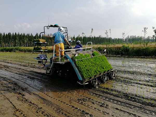 现场,操作人员完成定位和调试后,将秧苗盘置于载秧台上,水稻插秧机有序地在田块上来回驰骋,栽下一行行整齐的秧苗,机械自动掉头换行,随带载秧台自动升降。除了人工送苗,机具完全处于自动作业状态。原来一辆插秧机需要一名驾驶员、两人站在两侧摆秧苗,现在无人驾驶插秧机只需一名摆秧苗人员,节省了2名劳动力,大大提高了插秧的精准度和栽插质量。