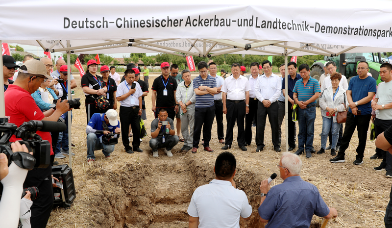 贺在锐在欢迎辞中说,通过“田间日”活动的举办,我们着力推广实用技术、宣传项目成果,致力探讨农机农艺技术、提升国内农业生产水平、提高土壤可持续发展能力,全力打造中德农业技术交流开放式国际化平台,努力为中国农业未来的发展方向探究更多可行之路。真诚希望借助中德示范园的平台,能够与更多政府、企事业单位、社会组织在食品安全生产、农业机械装备制造、农机智能研发、人才队伍培养等领域开展更多的合作,共同推动中国农业的创新与可持续化发展。