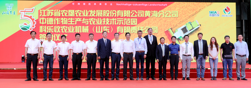 继中德作物生产与农业技术示范园第五届“田间日”开幕之后,6月16日,中德示范园第五届“田间日”活动成功举办。在德式啤酒宴上,苏垦农发股份公司总裁王立新致祝酒词,黄海农场公司党委书记、苏垦农发黄海分公司总经理、中德示范园主任贺在锐致欢迎辞,中德示范园德方专家霍斯特·布恩格主持,苏垦农发股份公司副总裁陈培红、黄海农场公司董事长、总经理李卫东、GFA咨询集团有限公司项目经理安德列斯·伽木措、中德农业中心德方主任周裕耕等中德双方领导和官员出席活动。出席活动的还有:项目咨询机构领导、项目合作商代表、集团公司和苏垦农发公司相关领导以及黄海领导班子成员、中德示范园领导和专家以及媒体记者共200余人。