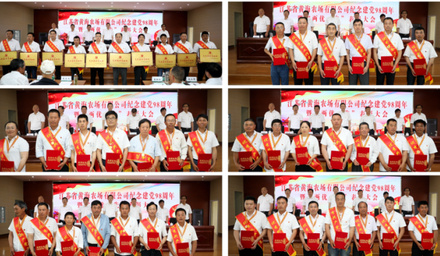7月1日,黄海农场有限公司召开纪念建党98周年暨“两优一先”表彰大会,重温党的光辉历史,缅怀党的丰功伟绩,表彰一批在“苏北明珠 美丽黄海”高质量发展征程中涌现的先进基层党组织、优秀党务工作者和优秀共产党员。黄海农场公司党委书记、苏垦农发黄海分公司总经理贺在锐,董事长、总经理李卫东以及黄海、中德示范园、宿迁分公司领导薛亚林、沈进松、杨海燕、何彦平、丁前卫出席大会。