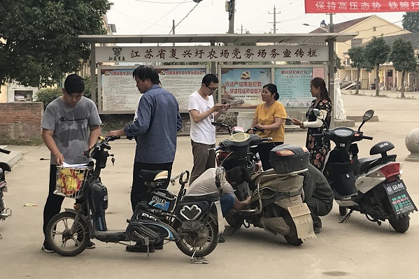 复兴圩社区积极开展电动车上牌志愿服务