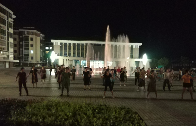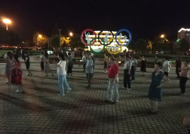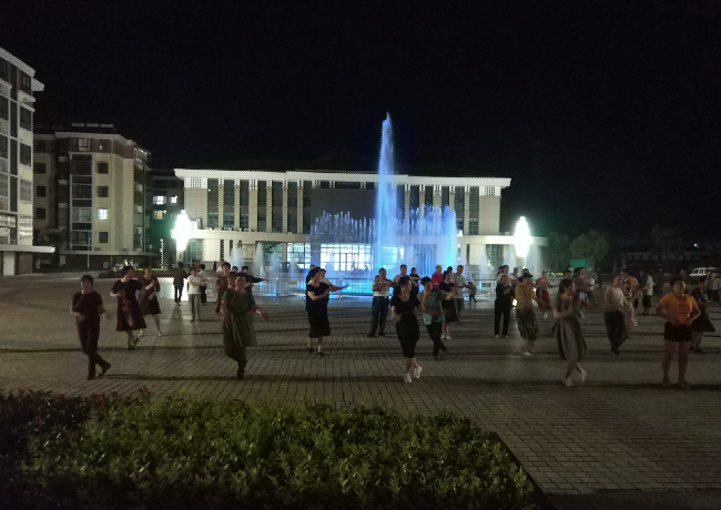 9月4日夜晚,在淮海音乐喷泉文化广场里,有近200名职工居民在周边和音乐喷泉灯光的映衬下,在两个相邻的舞蹈池中翩翩起舞。因为职工休闲体育运动广场进行升级改造,所以原先在体育广场上跳交谊舞的爱好者们也来到了奥林匹克五环下进行临时场地的跳舞。虽然不同的音乐、不同的舞姿,但在他们两支舞队的协同下,不仅相安无事,而且还跳出了不同的韵味,今晚,这里也成了农场有限公司小城镇中心地带一道最亮丽的风景。