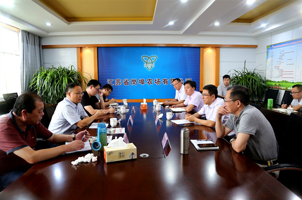 李锋一行首先现场参观了岗埠在田水稻和高效农业产业园,听取了岗埠现代农业产业技术体系、现代农业产业园规划运营等方面情况介绍,详细了解岗埠发展的总体规划、以及项目建设进展等情况。经过60年不断创新,岗埠已经建成一二三产融合发展的现代化农场,在科研创新、示范推广、高效农业、规模农业、休闲观光等发展上迈出了新的步伐,粮食单产逐年上升,如今,小麦单产突破500公斤,产量比建场初期增长了10倍多,水稻单产突破600公斤,粮食总产超过70000万千克,成为江苏农垦重要的粮食和种子生产基地。