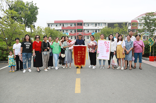 今年9月10日教师节,岗埠中心小学二(6)班家长代表怀揣着万分感激之情自发来到学校,真诚地把一面印有“关心下一代,汗水浇未来”字样的锦旗、鲜花送给二位任课教师。