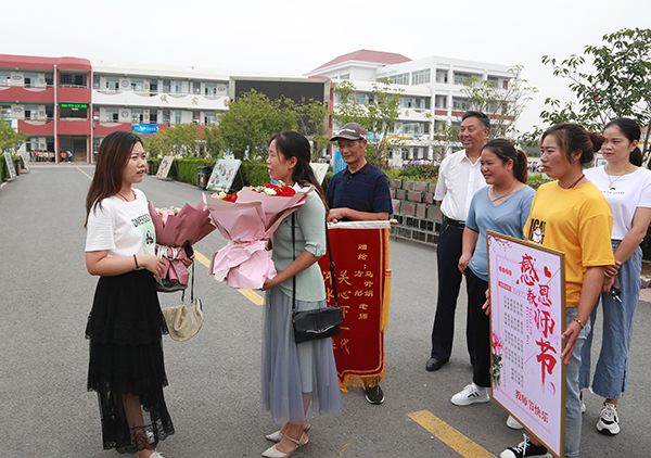 今年9月10日教师节,岗埠中心小学二(6)班家长代表怀揣着万分感激之情自发来到学校,真诚地把一面印有“关心下一代,汗水浇未来”字样的锦旗、鲜花送给二位任课教师。