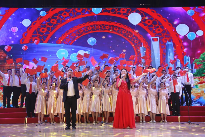 临近尾声,由滨淮农场70名青年员工带来的大合唱《江苏农垦之歌》与《我和我的祖国》,唱出了江苏农垦人对祖国母亲的崇高敬意和美好祝愿,为晚会画上了圆满句号。