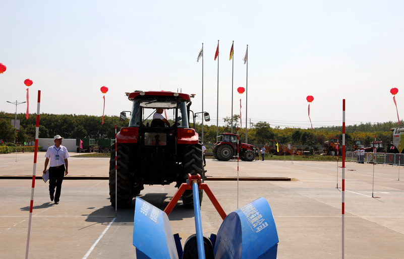 竞赛内容为:一次倒车入库挂接农具、通过窄桥、模拟开沟作业、避开障碍物、一次倒车入库停放农具、出库停至起点位置。