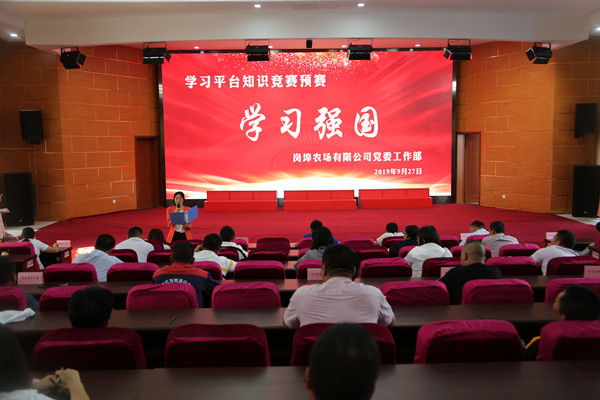在新中国成立70周年之际,为促进“学习强国”学习平台的推广使用,引导广大党员干部全面学习贯彻习近平新时代中国特色社会主义思想,深化“不忘初心、牢记使命”主题教育成果转化,推动学习型党组织建设,9月27日下午,岗埠农场有限公司在职工之家会议室举办“学习强国”学习平台知识竞赛预赛。来自各党总支、直属党支部的25支队伍共计75人参加了本次预赛。
