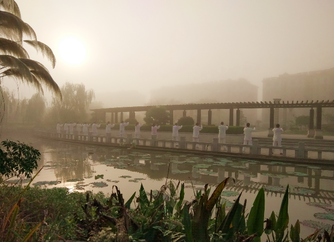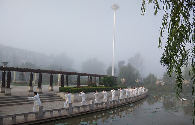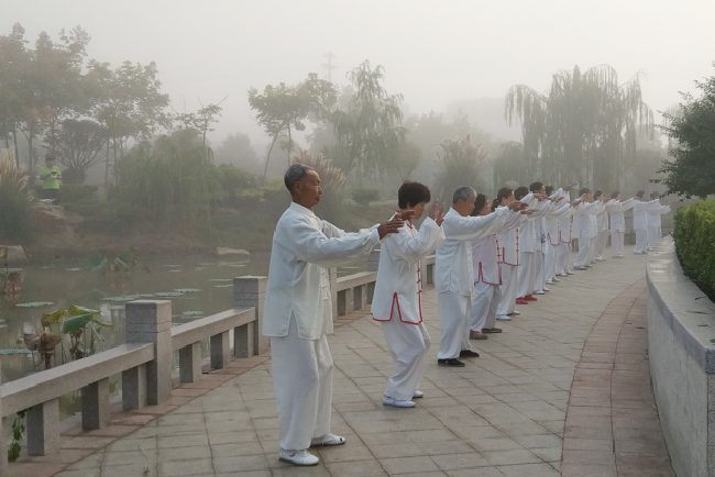 每天早晨6时,淮海老年太极拳爱好者们就会准点到农场的文化广场、体育广场或是淮海公园内参加太极运动,从而充分展现“我运动、我健康、我快乐”的淮海老年人健身体育的风采,并为淮海农场有限公司全力打造的健康体育小镇营造出良好的健康体育氛围。