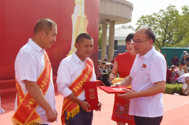 我们通过最终的表彰宣传,组织职工群众口口相传地讲好身边的故事,谈论他们的切身体会,并以在职工群众参与度较高的广场文化节上进行推介,就是要把发生在职工群众身边的故事用生动活泼的宣传形式来发扬光大,凝结成广大干部职工学有先进,追有榜样的浓厚氛围,从而带动更多的人讲好和做好更多的淮海故事,形成农场公司文明新事百花齐放的生动局面。图为第五届淮海农场文明新事当选人授奖和合影时的镜头。