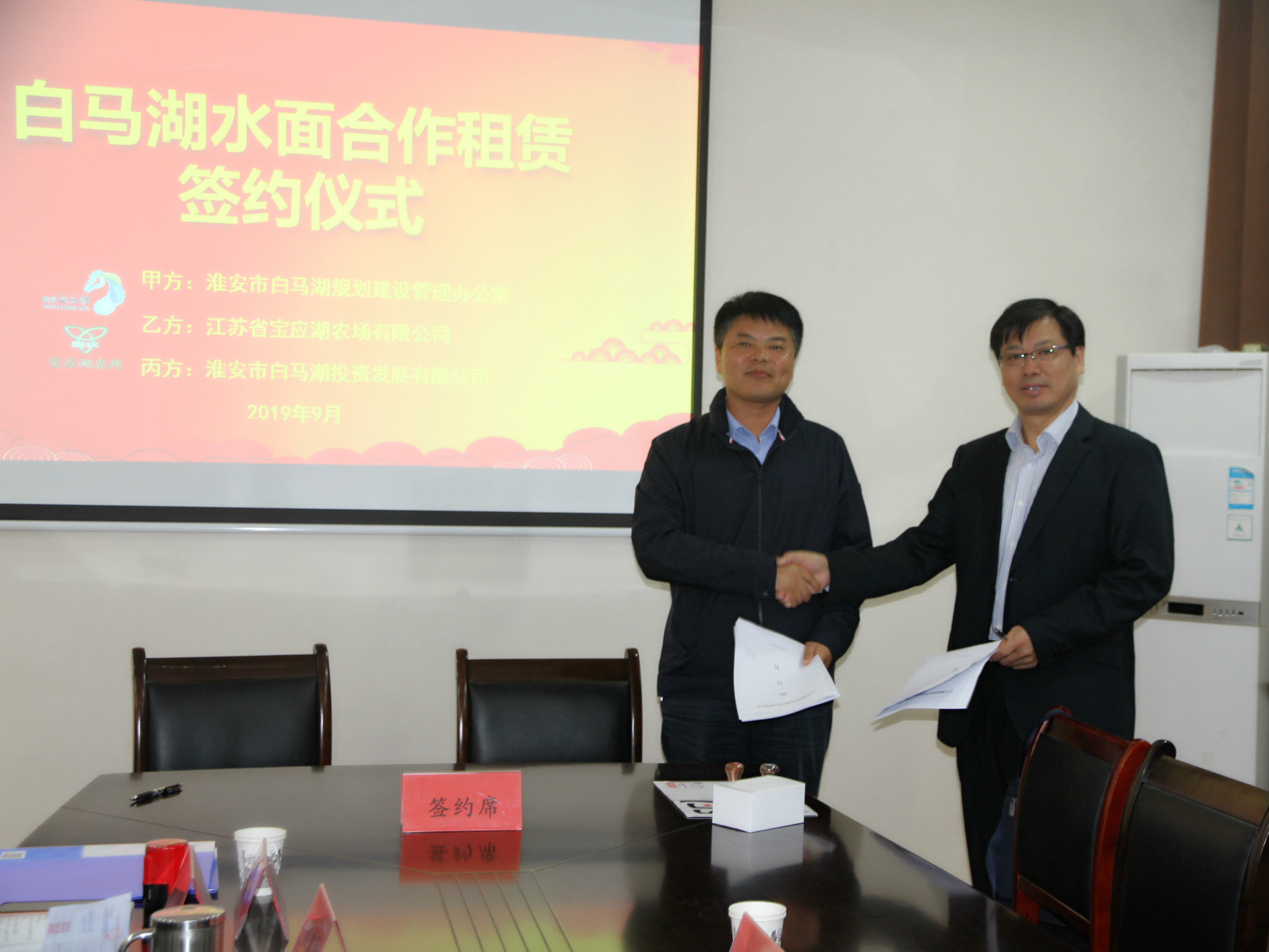 10月10日,宝应湖农场有限公司小会室内掌声阵阵,标志着农场公司与淮安市白马湖规划建设办公室、淮安市白马湖投资发展有限公司开启白马湖退围还湖安置区租赁合作新征程。