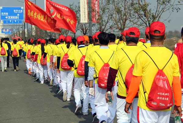 比赛中,岗埠的参赛选手们身着整齐的黄色比赛服,迈着整齐的步伐,跟着律动的音乐节奏,队形始终保持整齐划一,像一支训练有素的部队,大踏步前进,展示出农垦人良好的形象和素质。许多参赛选手被岗埠整齐的队形和富有感染力的音乐吸引,纷纷加入进来,形成一道亮丽的风景线。