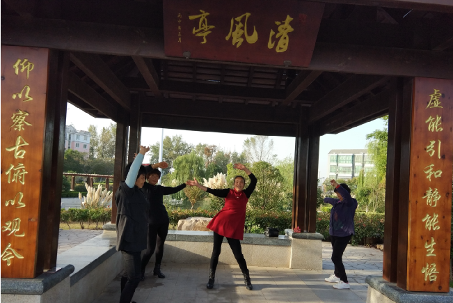 10月29日一早,阳光明媚,晴空万里。走在淮海公园内那如诗如画的绿色氧吧里,边晨起健身,边欣赏美景。在公园最高处有悠扬的音乐声传来,循声望去,只见4位退休的职工居民,正随着音乐的节拍在抖着腰肌。虽然几个人有的叫不出名字,但看她们的神态和身手,明显感受到多年来健身带来的光鲜。