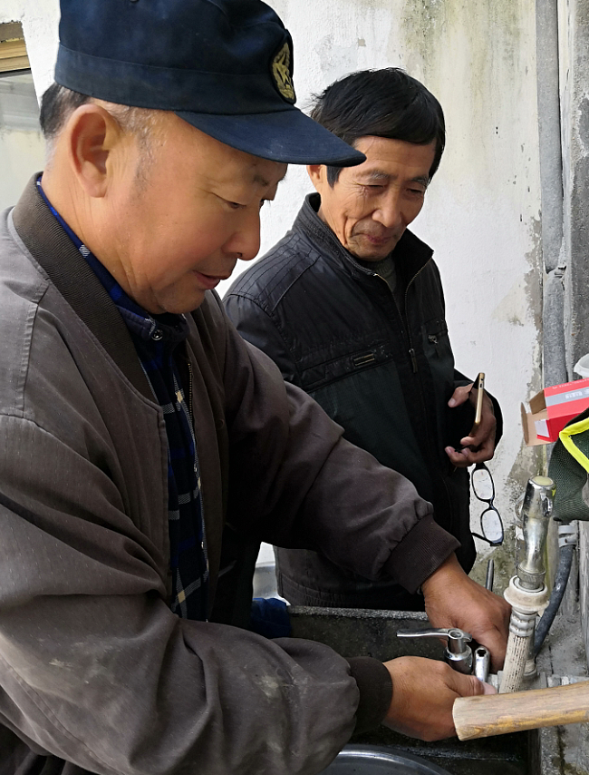辛滨丰是小区里出了名的大嗓门,他热心公益事业,除积极参加单位组织的志愿活动的同时,他还践行“雷锋”作风,不管是哪家的线路出故障了、水管漏了、下水道堵了,还是哪家夫妻闹矛盾、邻里发生纠纷,他总是出现在现场。人们有解决不了的问题,总是请他这个“智多星”前来解决,他所住的辖区,有近百个“三老”人员和相对困难家庭,他总能把他们当作自己的亲人一样,聊家常,问寒暖,尽自身所能给予一定的帮助,成了大家的贴心人!图为辛滨丰为他人在修理水龙头、更换电管时的镜头。