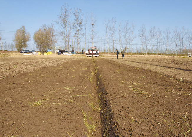 “我们通过自主研制并申请了专利号的播种机械,实现了开沟、平整、施基肥、反旋、盖种、施种肥和镇压一体化的复式机械,不但减去了交叉耙、抛肥、镇压等环节,精细化的平整方式还每亩地节约了约10斤种量的种子。”说起今年投入三秋秋播作业新型机械的好处时,时任淮海分公司副总经理的陈海军如数家珍,“你瞧,我们播种后的田间就像是一件艺术品的漂亮,第一道深旋的反旋犁刀作用是细碎土壤、拌匀基肥,第二道浅旋加密的正旋犁刀把土旋翻上去后,这时输送带上的种子和种肥分别播下田,掉落的泥土均匀地像毯子样地覆盖在种子和种肥上,这样播种方式实现了种子深浅一致和种肥的相邻供给,有效地提高了成苗率。