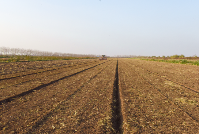 图为淮海自主研制的复式机械在开沟平整播种一体化作业时的镜头。