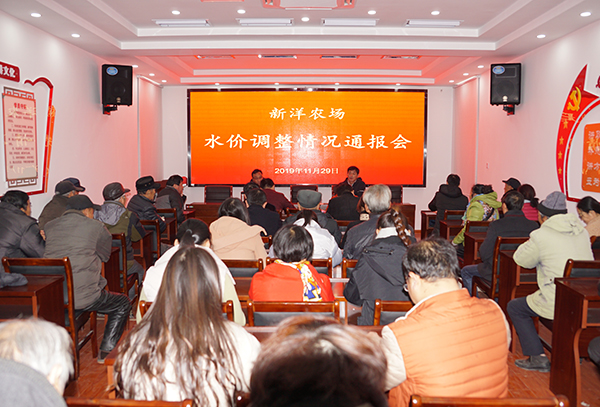 会上,陈葛祥就农场自来水价格调整、长江水管网运行相关情况进行说明和通报,同时广泛征求与会代表对水价调整意见反馈。他表示,新洋农场供水分离改造项目于10月底进入试运行阶段,新洋人民预计在年内喝上优质长江水,并且享受与射阳县“同水源、同管网、同质量、同服务、同价格”等普惠政策,确保24小时供水。