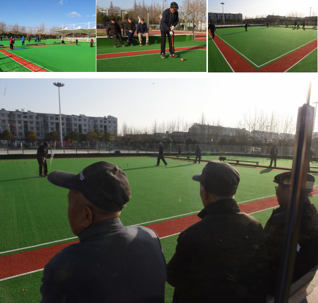 每天上午下午,负责器械管理的城南社区退休工人李志兰就会准点来到淮海门球场开门。随即一个个门球爱好者们,就会跟着来到场地内,进行每天例行的门球运动。虽然门球场在农场才建起来,但参加训练的老年门球爱好者们还是以灵巧、娴熟、稳健的击球技术,一个个在球场上激烈角逐,也颠覆了人们对门球运动的认知。