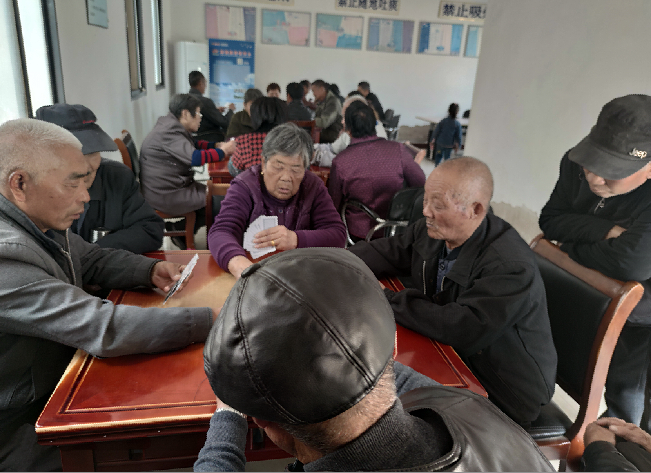 淮海军垦传统文化的教育,让老年人更是珍惜这份人与人之间的传统和友谊,他们把弘扬孝亲敬老文化传统、关爱和照顾他人纳入培育和践行社会主义核心价值观宣传教育活动中,在为人们作示范的同时,也进一步增强了农场社区职工居民和全社会关心老人、爱护老人的意识,也为今后更好地开展老年人居家养老工作打下了良好的基础。图为老年人在一起在玩乐时的镜头。