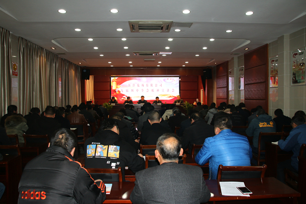 党委书记陈守军作动员讲话。全面深入学习好、宣传好、贯彻好十九届四中全会精神,是当前和今后一个时期的头等大事和首要政治任务。一要自觉把加强党的领导摆在更加突出位置。二要始终坚持和完善党的领导制度体系。要对标“不忘初心、牢记使命”的制度、完善坚定维护党中央权威和集中统一领导的各项制度、健全党的全面领导制度、健全为人民执政、靠人民执政各项制度、健全提高党的执政能力和领导水平制度、完善全面从严治党制度6个方面抓落实。三要迅速掀起学习贯彻四中全会精神的热潮。