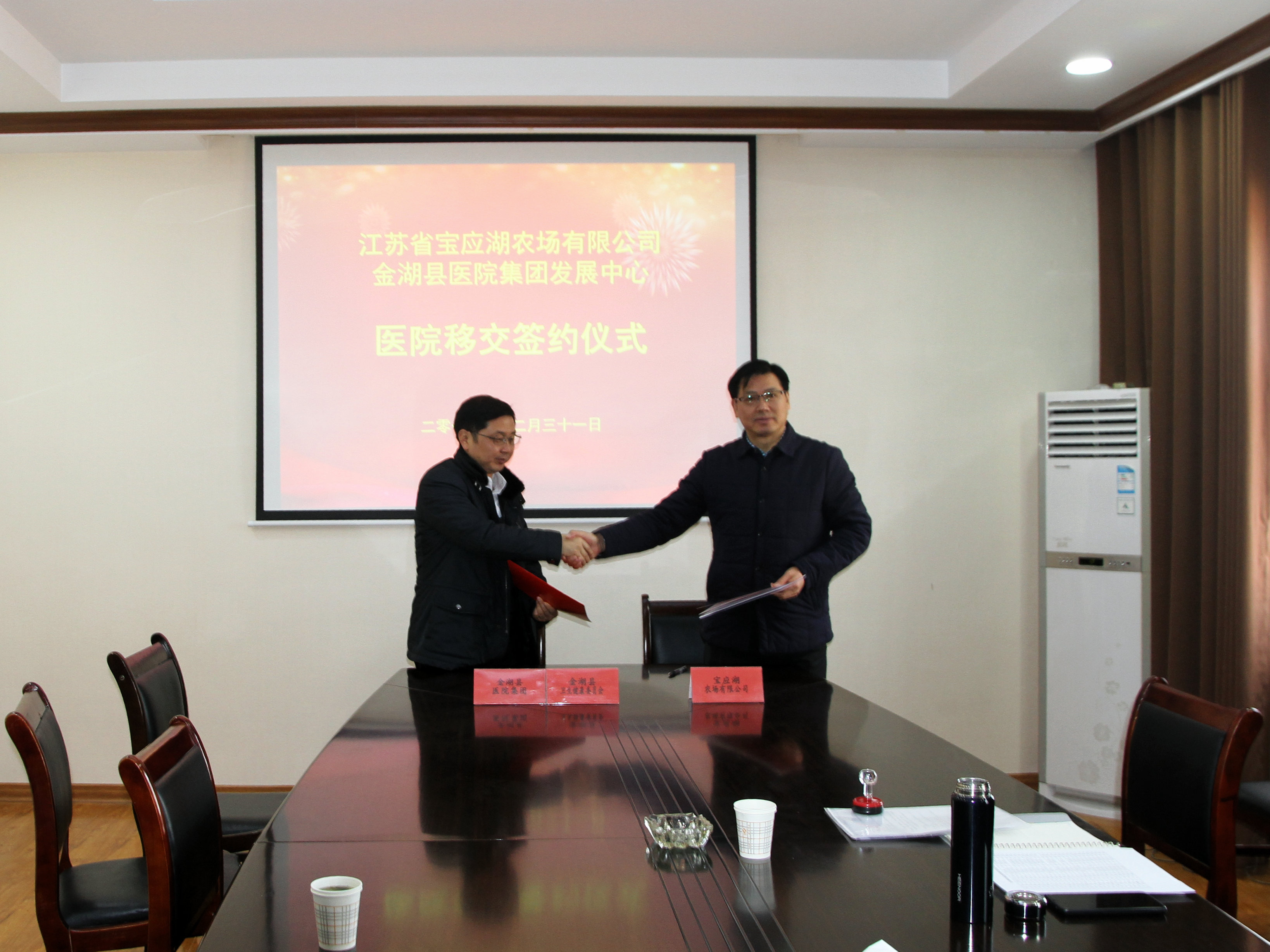 12月31日,宝应湖农场有限公司小会议室内掌声阵阵,农场公司与金湖县医院集团发展中心职工医院移交协议书如期签订。