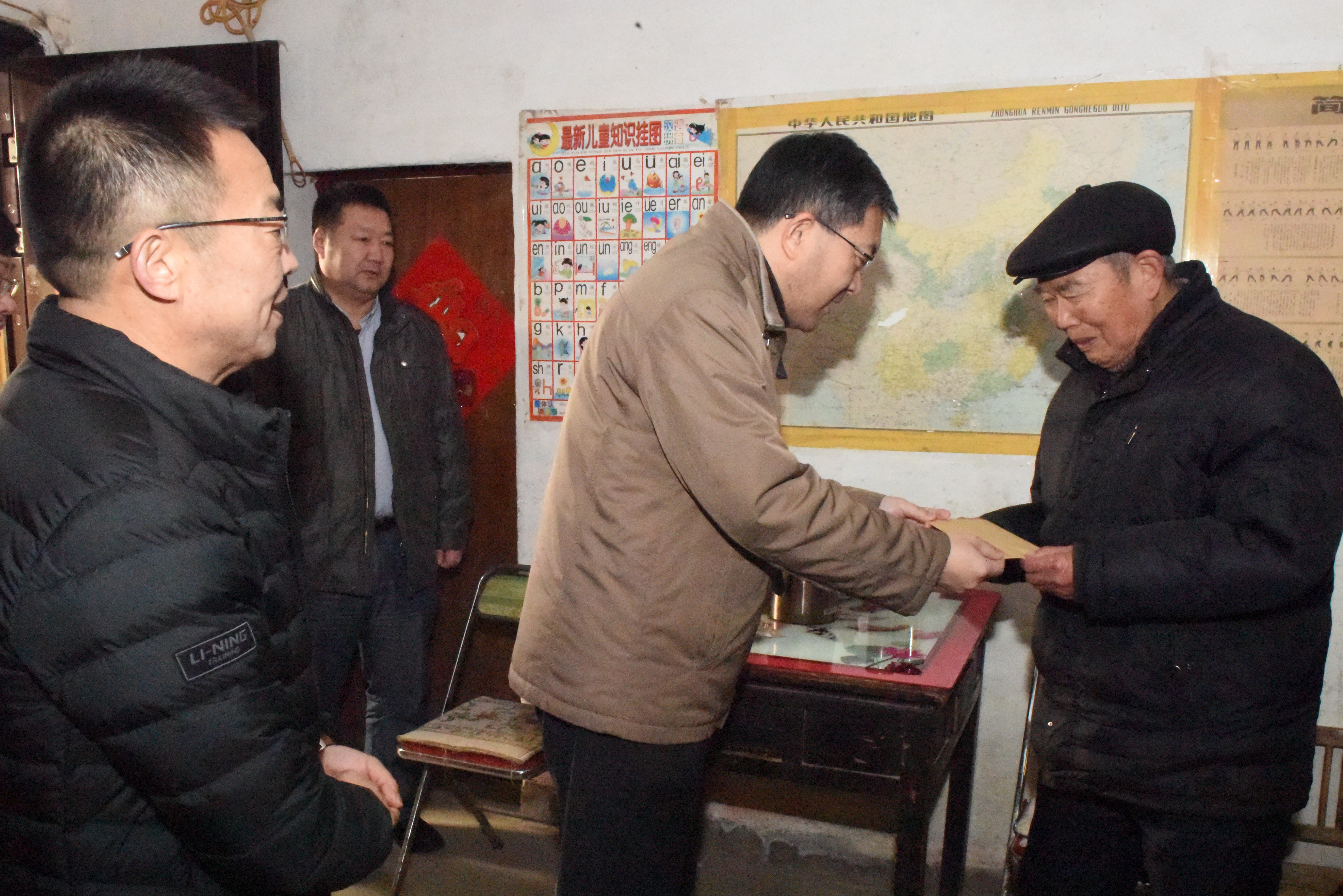 87岁高龄的离休老干部祁国瑞住在群乐小区的平房家中,杨义林等一行徒步来到祁老家中时,紧紧地握着迎上前来的祁国瑞老人的手,亲切地嘘寒问暖,并为他送上新春的问候和祝福。在交谈中,杨义林详细询问的老人的身体状况以及生活起居情况,嘱咐家人要照顾好老人的身体,让老人颐养天年。