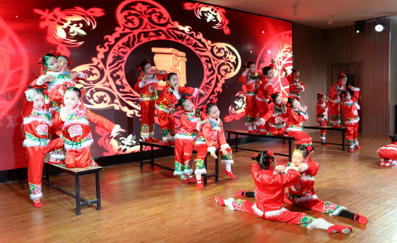 年会在黄海小学生表演的舞蹈《《姥姥门前过大年》中拉开帷幕。