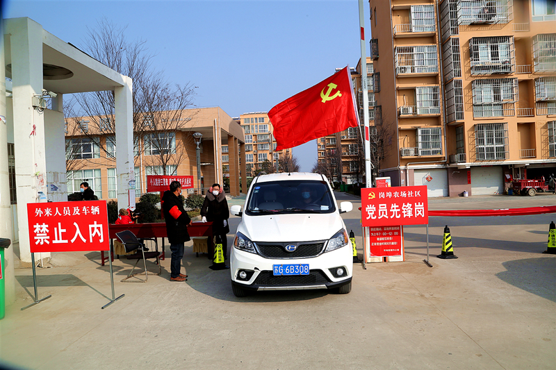 社区成立“党员先锋岗”,从社区主任到基层工作人员,每天奋战在防控一线,他们舍小家、为大家,放弃春节假日,奔波于各居民点和居民小区,逐户走访调查、进门入户询问,宣传疫情防控知识。禁止外来人员和车辆入小区,并测量体温、登记。先后发放各种防控通告、公告、防控知识和“致农场居民一封信”2万余张,形成人人知晓,人人参与、人人防控的局面。