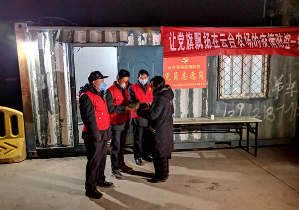 寒冷抵挡不住内心的火热,一碗热气腾腾的汤圆温暖了这个夜晚。云台农场检查站点现场的党员和志愿者们常说的一句话是,“我们是党员,要责无旁贷地为群众筑牢生命防线。”平凡的一句话,是党员坚守一线的承诺,他们用实际行动,为人民群众生命健康安全构筑起了阻击疫情的坚固屏障。鲜艳的党旗,飘扬在疫情防控第一线,也飘扬在全场职工群众的心里。