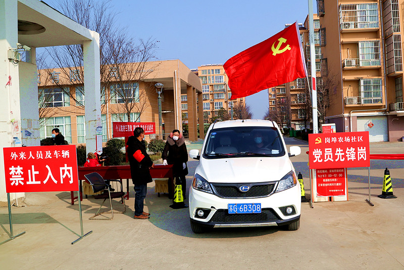 勇于担当,党旗在疫情防控一线高高飘扬。面对疫情,岗埠党员干部纷纷请战。全场46个基层党组织1000多名党员,在战“疫”中冲锋一线, 机关、社区和生产区成立7支“党员突击队”、11个党员示范岗、10支志愿服务队奋战防控一线,走访4733多户群众,张贴、发放各类防控疫情知识宣传资料3万多份,筑起疫情防控坚强堡垒。大年初二,机关第一批党员志愿者在包明义带领下,在农场的主要路口进行检查,对未戴口罩行人进行实时劝导,并发放宣传单和口罩,并嘱咐他们“少出门、勤洗手、戴口罩、不聚餐”。“您好,请停车并出示证件,接受检测……”在311国道与张赣路交界处卡口,由民警、志愿者、医生、机关科室领导、网格员等组成的党员先锋岗正紧张有序地开展排查工作。每过一辆车,检查组都会上前询问车辆的具体行程和人员身体情况,并测量体温,做好信息登记,做到不漏一车、不漏一人。像这样进出农场的5个主要路口都设有检查卡口。按照外防输入、内防扩散、看好自家门、管好自家人的防控原则,实行全域村庄、小区封闭式管理,各村、社区对村级道路、村庄(小区)出入口拉关设卡,由志愿者全天轮流在村口值守,劝退外来走亲访友人员,对全场村庄65处(点)实行封闭限行。75岁退休老党员杨维龙主动要求加入党员志愿服务队,他说:“虽然我退休了,但我还是党员!”在他带领动下,10几名老干部、老党员也主动请缨,坚持战斗在抗击疫情一线。从来都没有什么岁月静好,只是有人一直在默默负重前行,让党旗在疫情防控斗争第一线高高飘扬。
